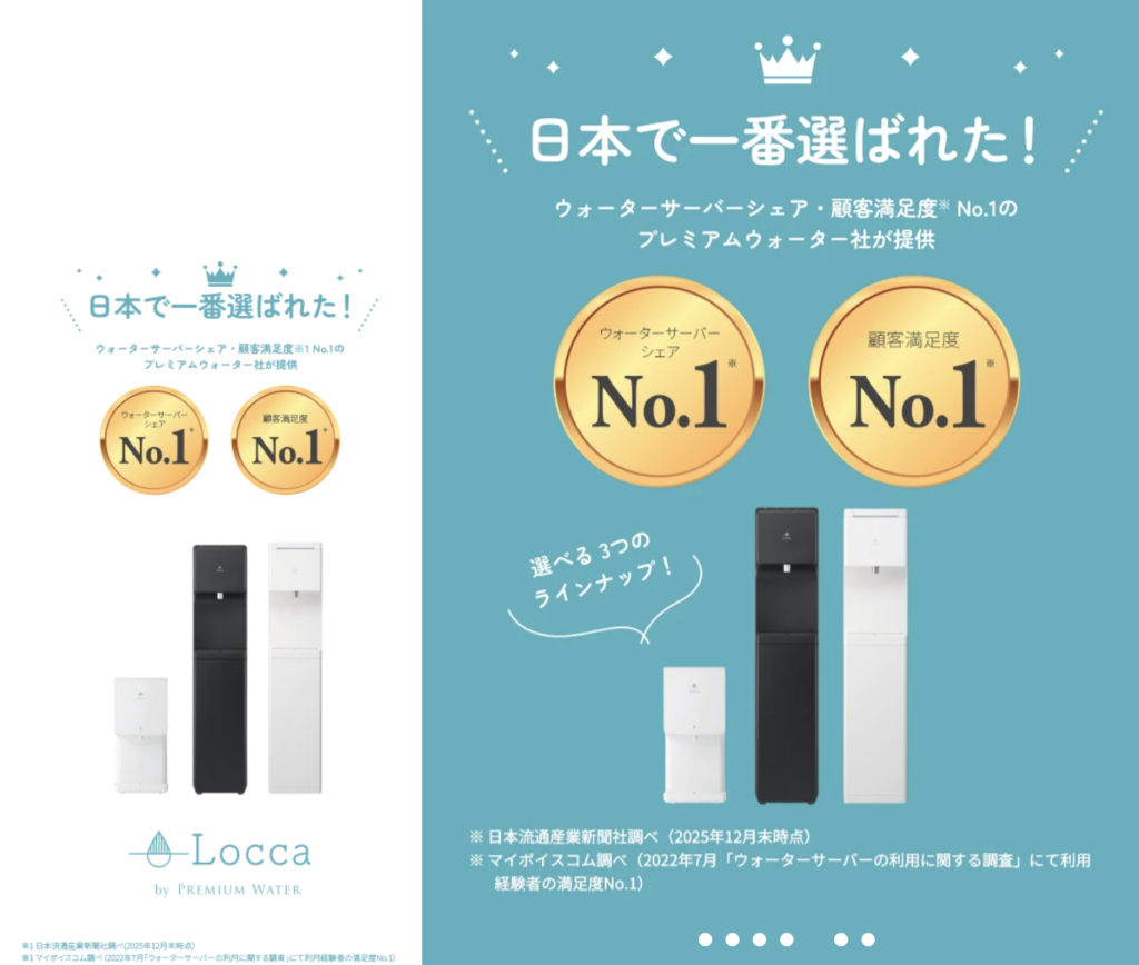 Loccaは、リーズナブルな料金設定で人気の浄水型ウォーターサーバーです。シンプルな設計と使いやすさが特徴で、初めてウォーターサーバーを導入する方にも選ばれています。