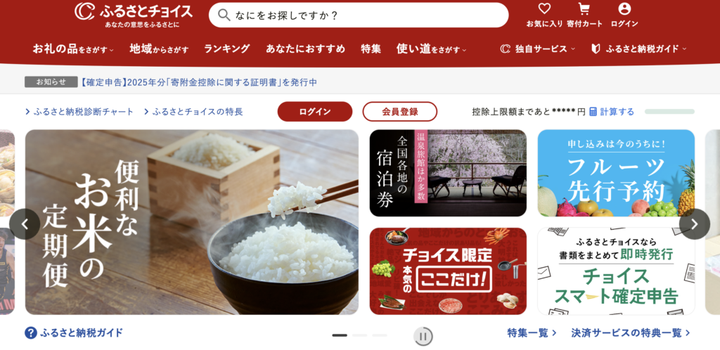 ふるさとチョイスは掲載自治体数が非常に多く、日本最大級のふるさと納税ポータルサイトです。