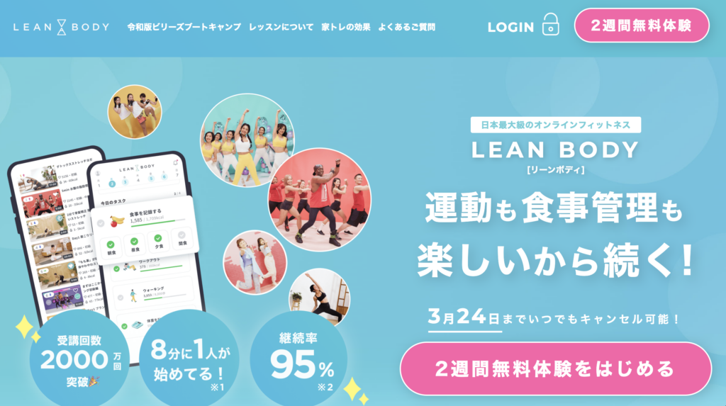 LEAN BODYは、自宅で様々なフィットネス動画を見ながらトレーニングできる人気サービスです。ピラティス・ヨガ・ダンスなど幅広いトレーニングに対応しています。