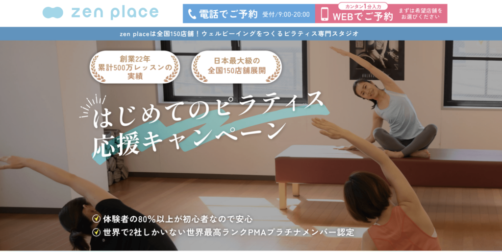 | zen place | 8,800円〜 | 無料 | 本格ピラティス | スタジオ品質 |