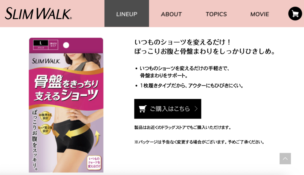スリムウォーク骨盤ショーツは、ドラッグストアなどでも購入できる骨盤サポートインナーです。手軽に購入できるため、骨盤ショーツを初めて試す方にも人気があります。