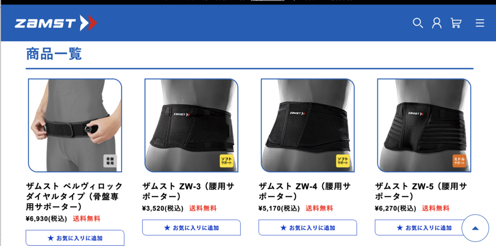 | 商品名 | メディテクト腰ベルト | バンテリンコーワ 腰サポーター | ザムスト ZWシリーズ | 中山式 腰椎医学コルセット | お医者さんの腰ベルト |