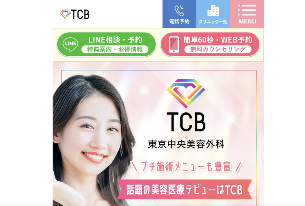 TCBは急成長中の美容クリニックで、広告力と集客力に強みがあります。二重整形においてもリーズナブルな価格帯と豊富なプランが魅力で、多くの患者に対応しています。