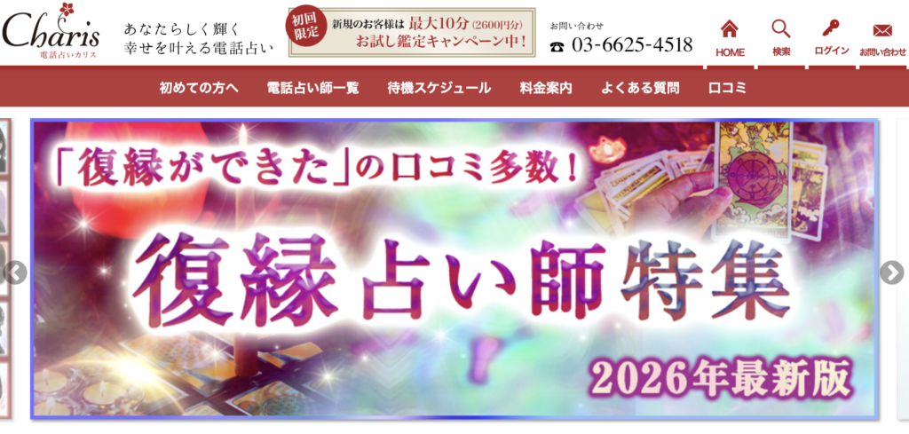 電話占いカリスは、鑑定実績が豊富で、信頼性の高さが特徴のサービスです。恋愛相談の実績も多く、安定した鑑定を受けられます。